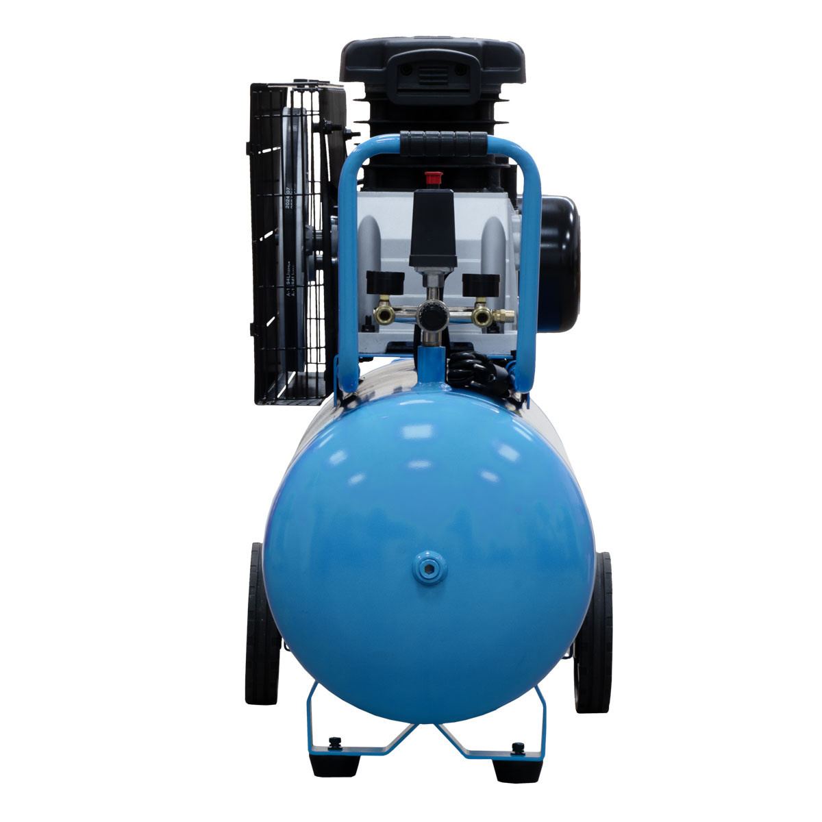 With this compressor you can perform many jobs. For a hobbyist or the do-it-yourselfer, this is an excellent machine when a little more is required in terms of work. The machine is also very suitable for paint spraying and grinding. It has a powerful 3hp engine and a 2 cylinder pump with v-belt drive. The blades in the flywheel ensure that the pump is cooled. The pressure vessel has a capacity of 90 liters, and provides a fairly large air supply that can be used for a long time. Because the compressor has a large pressure vessel, the weight is 63 kilograms. This means that it is not a light compressor. Nevertheless, the compressor is quite easy to move, because it has sturdy wheels and a handle.