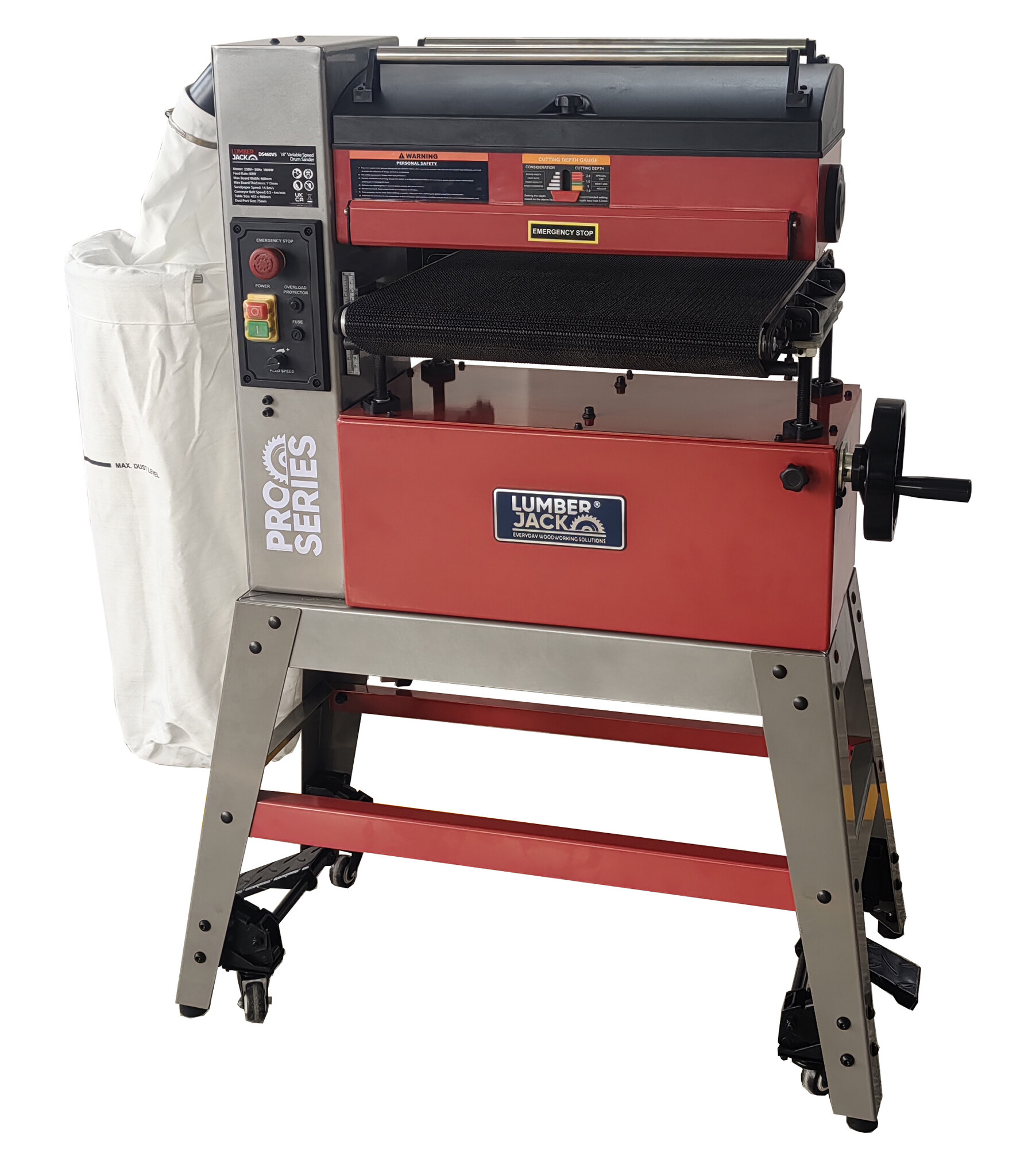 The Lumberjack 18" Open Stand Drum Sander DS460VS offers broad sanding capacity with a small footprint. Sand up to 18" wide in one pass. Sand down precisely to 3mm in thickness Read more