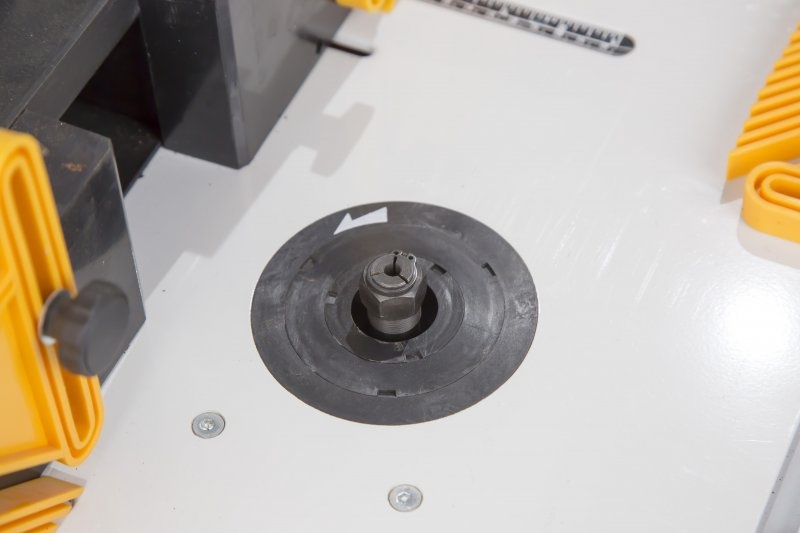 - Verstelbare stalen en kunststof geleiders, verticale en horizontale drukplaten voor materiaalgeleiding, een gradenboog en een voldoende groot werkblad van 597mm x 457mm zorgen voor optimaal gebruiksgemak en veiligheid.