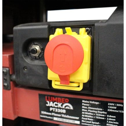 De Lumberjack PT330B draagbare schaafmachine / vandiktebank heeft een compact ontwerp met opklapbare tafels voor eenvoudige opslag en transport, gebouwd rond een krachtige 1500W kwaliteitsmotor en voorzien van twee messen.